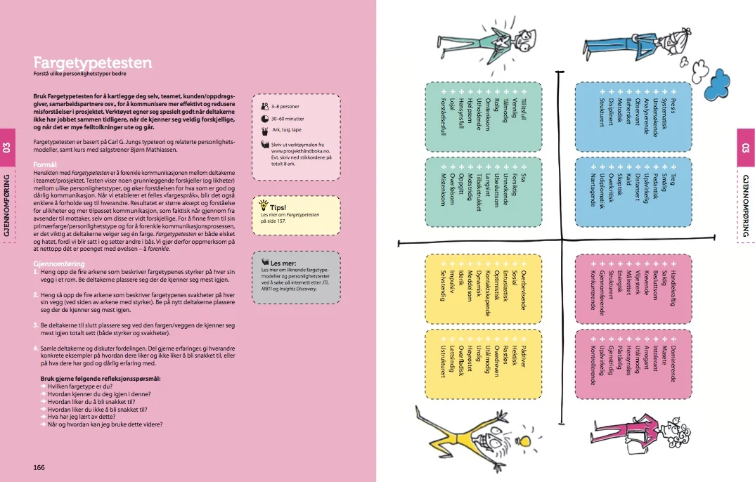 Bruk Fargetypetesten for å kartlegge personlighetstypene i teamet og prosjektet.